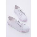 Çocuk Unisex Beyaz Pudra Rahat Kalıp Ok Detaylı Lastik Bağcıklı Kumaş Spor Ayakkabı
