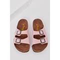 Çocuk Unisex Pudra Rahat Kalıp Poli Taban Çift Tokalı Nubuk Sandalet