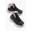 Çocuk Unisex Siyah Faylon Taban İçi Kürklü Lastik Bağcıklı Bot