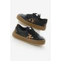 Çocuk Unisex Siyah Leopar Termo Taban Yıldız Detaylı Bağcıklı ve Cırtlı Spor Ayakkabı