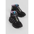 Çocuk Unisex Siyah Lila Kalın Kauçuk Taban Lastik Bağcıklı Cırtlı Outdoor Trekking Bot