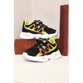 Çocuk Unisex Siyah Sarı Rahat Kalıp Işıklı Cırtlı Ayakkabı