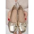 Kadın Altın Yılan Derisi Görünümlü Fiyonk Detaylı Günlük Babet