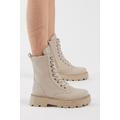 Kadın Bej Cilt Rahat Kalıp Kalın Taban Bağcıklı ve Fermuarlı Bot