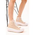 Kadın Bej Rahat Kalıp Kalın Tabanlı Uzun Spor Ayakkabı