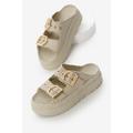 Kadın Bej Yüksek Poli Taban Çift Bantlı Tokalı Terlik