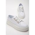 Kadın Beyaz Poli Taban Keten Halat Bağcıklı Spor Ayakkabı