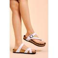 Kadın Beyaz Rahat Kalıp Poli Taban Çapraz Model Nubuk Parmak Arası Terlik