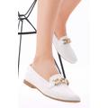 Kadın Beyaz Rahat Kalıp Tokalı Örgü Babet