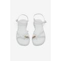 Kadın Beyaz Rahat Kalıp Yüzük Detaylı Çapraz Sandalet