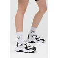 Kadın Beyaz Siyah File Rahat Kalıp Yüksek Taban Bağcıklı Spor Ayakkabı
