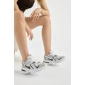 Kadın Beyaz Siyah Kalın Hafif Faylon Taban File Detaylı Bağcıklı Spor Ayakkabı