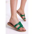 Kadın Çimen Yeşili Rahat Kalıp Çift Bantlı Terlik