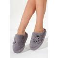 Kadın Füme Ayıcık Desenli Önü Kapalı Peluş Ev Terliği
