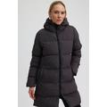 Kadın Füme Kapüşonlu Boydan Fermuarlı Cepli Orta Boy Dolumlu Şişme Mont