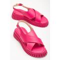 Kadın Fuşya Kalın Poli Taban Bilekten Bağlamalı Çapraz Bantlı Sandalet