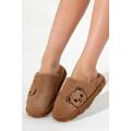 Kadın Kahve Ayıcık Desenli Önü Kapalı Peluş Ev Terliği