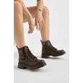 Kadın Kahve Kalın Termo Taban Tokalı Bağcıklı ve Fermuarlı Bot