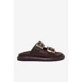 Kadın Kahve Rahat Kalıp Çift Bantlı Toka Detaylı Terlik
