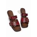 Kadın Kırmızı Rahat Kalıp Termo Taban Çapraz Bantlı Tokalı Terlik