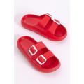 Kadın Kırmızı Rahat Kalıp Tokalı Yüksek Taban Eva Terlik
