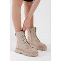 Kadın Krem Süet Poli Taban Arkası Fermuar Detaylı Bağcıklı ve Fermuarlı Bot