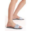 Kadın Mavi Önü Şeritli Desenli Tek Bantlı Terlik