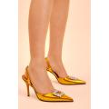 Kadın Oranj Gecce Serisi Önü Tokalı Sivri Burunlu Topuklu Ayakkabı