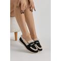 Kadın Siyah Beyaz Termo Taban Kürk Detaylı Süet Görünümlü Tokalı Günlük Loafer Ayakkabı