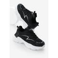 Kadın Siyah Beyaz Yüksek EVA Faylon Taban Nefes Alabilen Kumaş Desenli Bağcıklı Spor Ayakkabı