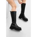 Kadın Siyah Kalın Poli Taban Düz Desen Fermuarlı Diz Altı Çizme