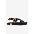 Kadın Siyah Leopar Poli Taban Rahat Çapraz Bantlı Sandalet