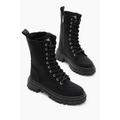 Kadın Siyah Mat Termo Taban Yanı Çift Tokalı Bağcıklı ve Fermuarlı Bot