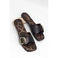 Kadın Siyah Rahat Kalıp Leopar Desenli Tokalı Terlik