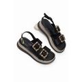 Kadın Siyah Rahat Kalıp Yüksek Taban Tokalı Sandalet