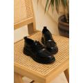 Kadın Siyah Rugan Rahat Kalıp Termo Taban Bağcıklı Günlük Ayakkabı