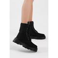 Kadın Siyah Süet Poli Taban Arkası Fermuar Detaylı Bağcıklı ve Fermuarlı Bot