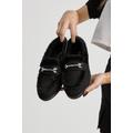 Kadın Siyah Termo Taban Kürk Detaylı Süet Görünümlü Tokalı Günlük Loafer Ayakkabı