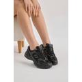 Kadın Siyah Yüksek Faylon Taban Fileli Desenli Spor Ayakkabı