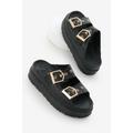 Kadın Siyah Yüksek Poli Taban Çift Bantlı Tokalı Terlik