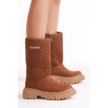 Kadın Taba Kapitone Desenli Rahat Kalıp Uzun Bot