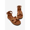 Kadın Taba Süet Rahat Kalıp Bilekten Bağlanmalı Sandalet