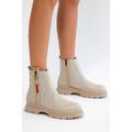 Kadın Ten Cilt Kalın Termo Taban Çift Fermuarlı Lastikli Bot