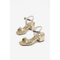 Kız Çocuk Altın Poli Taban Taş Detaylı Topuklu Ayakkabı