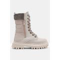 Kız Çocuk Bej Cilt Termo Taban Taş Detaylı Fermuarlı ve Bağcıklı Cırtlı Bot