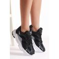 Unisex Siyah Gri Rahat Kalıp Yüksek Taban Bağcıklı Spor Ayakkabı