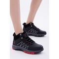 Unisex Siyah Kırmızı Rahat Kalıp Kalın Taban Zigzag Desenli Bağcıklı Bot